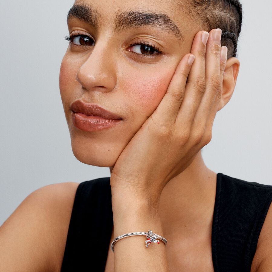 Love Disney's Mickey Mouse? There's a charm for that. Made from sterling silver, this romantic, playful design features vibrant red enamel on Disney's Mickey's signature shorts and the heart-shaped tip of his arrow. The bail is shaped as his wings, adding a whimsical touch, and the charm is engraved with the ©Disney logo. A unique opportunity to collect Disney's Mickey Mouse as cupid, this charm celebrates the joy of love and the magic of Disney.
