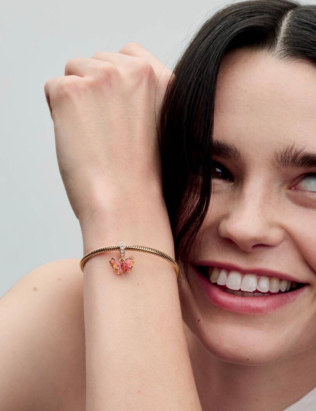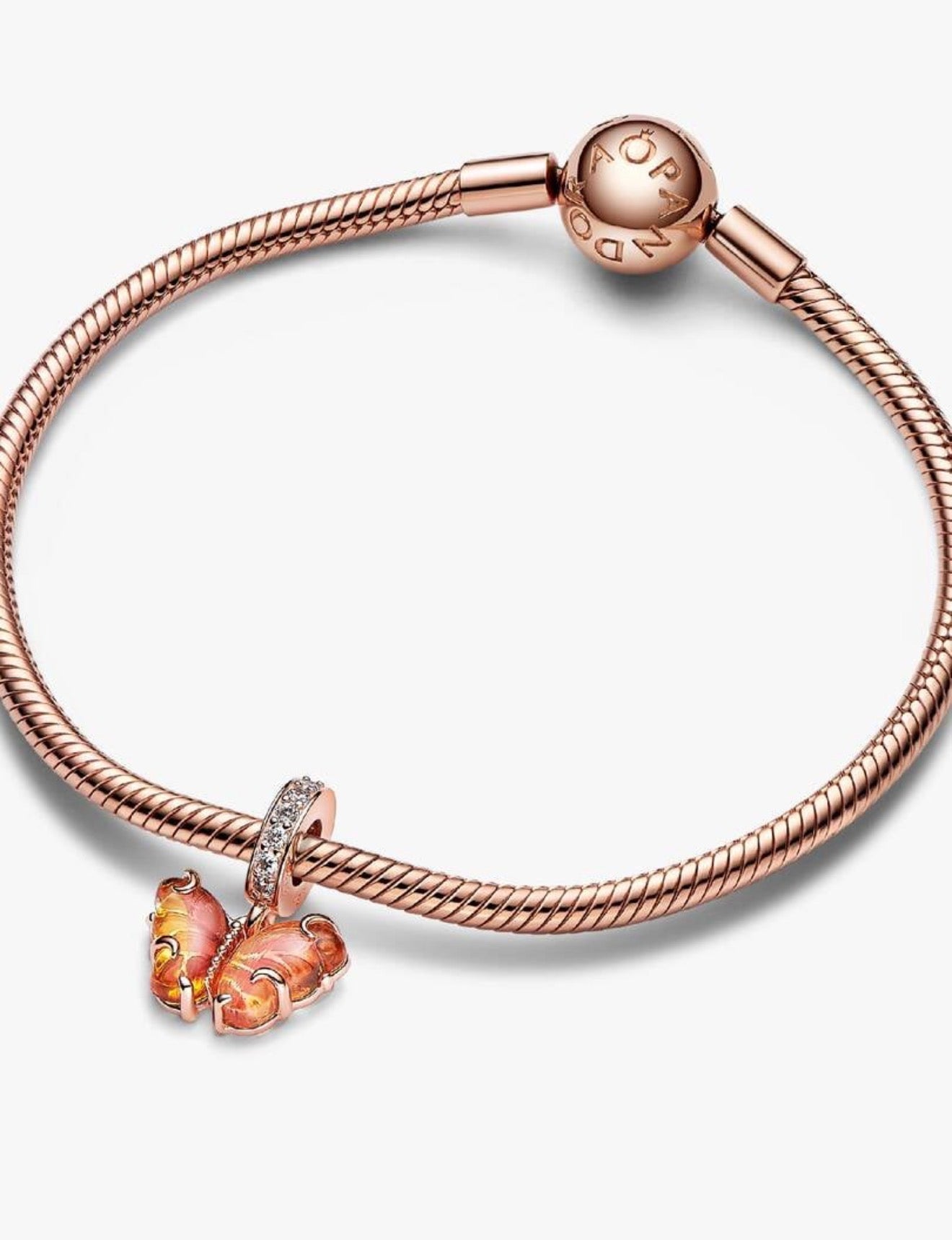 Pink & Yellow Murano Glass Butterfly Dangle Charm